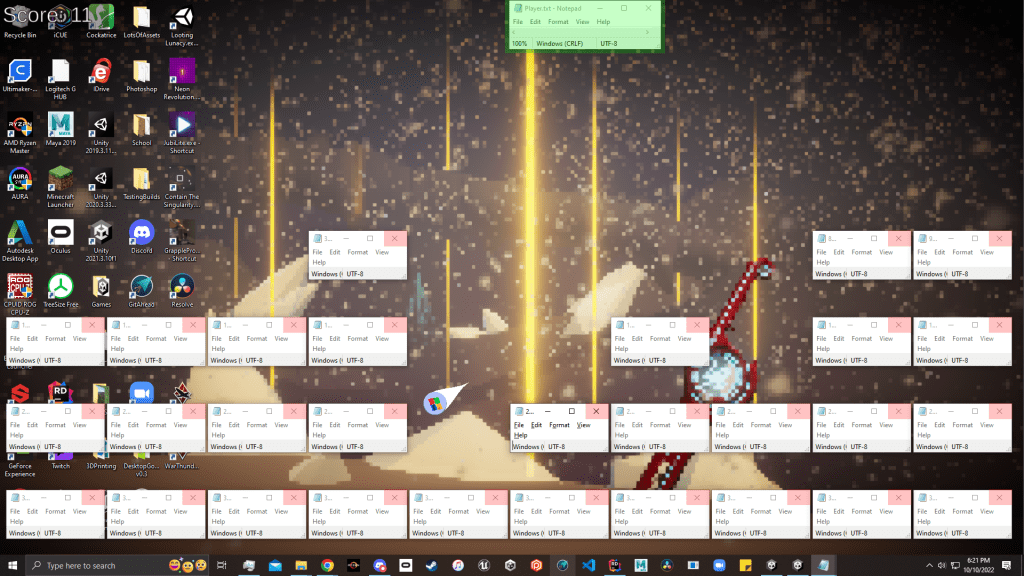 Windows Breakout and Audio Line Rider are games made for an experimental games class where we had two weeks to develop a unique concept and game. Windows Breakout uses Dll Imports and the notepad application to recreate the classic Atari game Breakout. I am really proud of this little experiment I think is it a unique game being rendered above the normal desktop. It also allowed me to create a Unity wallpaper engine to allow me to create my own wallpapers for my computer. Audio Line Riders is another game in a similar vane. In this game, you use your microphone audio volume to move the track up and down.
